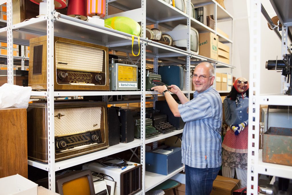Einen seltenen Blick hinter die Kulissen bietet das Stadtmuseum im M2K am Mittwoch, 5. November, um 18 Uhr. Sammlungskurator Dr. Arne Steinert öffnet das sonst nicht zugängliche Museumsdepot im Schloss Wolfsburg. Dort lagern Objekte, die zumeist von Bürger*innen ans Museum abgegeben wurden. Vom Kofferradio bis zur mechanischen Schreibmaschine, vom Ruhestandsgeschenk eines Werksangehörigen bis zur Uniform aus einem Spielmannszug ist hier alles zu finden.