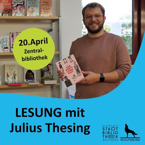 Lesung mit Julius Thesing in der Stadtbibliothek Autor, Illustrator und Designer Julius Thesing liest am Mittwoch, 20. April, um 19 Uhr, in der Zentralbibliothek der Stadtbibliothek Wolfsburg aus seinem Debütwerk… read more „You don’t look gay“