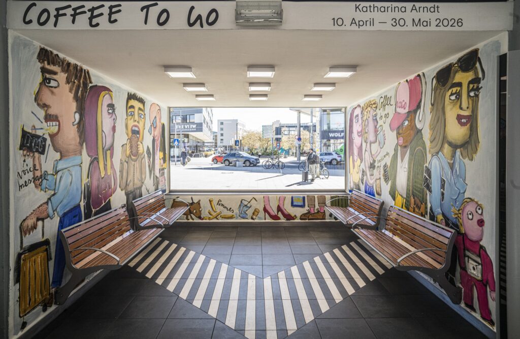 Zwischen Alltagsgeschehen und Identitätsfindung Die Berliner Künstlerin Katharina Arndt greift mit ihrer großformatigen Wandarbeit Coffee to go Szenen des alltäglichen Bahnhofsgeschehens auf. Mit humorvoller Überspitzung und farbintensiver Bildsprache kommentiert Arndt die Dynamik und Rastlosigkeit moderner Mobilität. Das Werk in der Kunst-Station im Hauptbahnhof Wolfsburg ist bis zum 30. August zu sehen. Die unterschiedlichen Arbeiten der Gruppenausstellung Shifting Selves im Schloss Wolfsburg beschäftigen sich mit Identität, Wandel und Selbstwahrnehmung und machen sichtbar, wie sie sich in einer sich immer wandelnden Gesellschaft verändern.