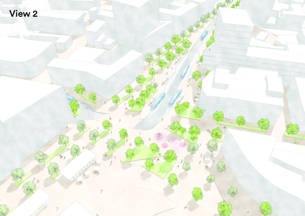 „Die vorgeschlagene Variante eröffnet vor den bestehenden und noch geplanten Gebäuden großzügige Flächen für den Fußverkehr. So wird die Verbindung von den Designer Outlets in Richtung Fußgängerzone nachhaltig gestärkt. Der ganze Bereich wird somit deutlich attraktiver für alle, die sich dort aufhalten – ob zum Erleben der vielfältigen Angebote, Verweilen oder Umsteigen. Gleichzeitig wird so der Standort Wolfsburg für Handel, Wirtschaft und Gastronomie noch interessanter“, ergänzt Wirtschaftsdezernent und WMG-Geschäftsführer Jens Hofschröer.