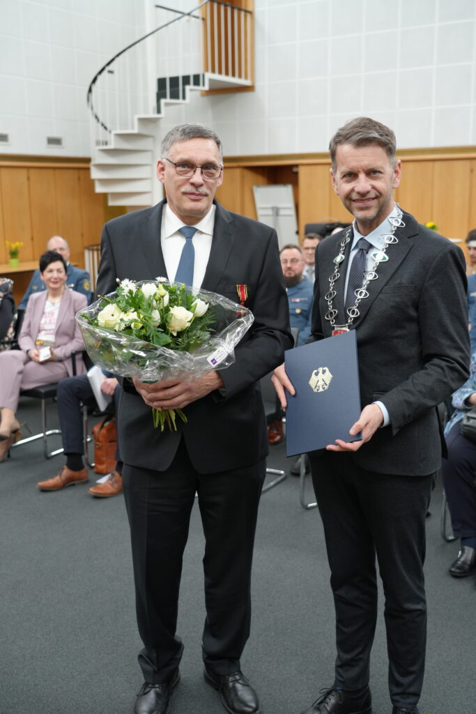 Mike Kelpin hat das Verdienstkreuz am Bande des Verdienstordens der Bundesrepublik Deutschland heute von Oberbürgermeister Dennis Weilmann im feierlichen Rahmen im Ratssitzungssaal im Rathaus im Beisein von Vertretenden aus Politik und Verwaltung ausgehändigt bekommen. Kelpin, engagierte sich rund 40 Jahre ehrenamtlich beim Technischen Hilfswerk (THW) im Ortsverband in Gifhorn.